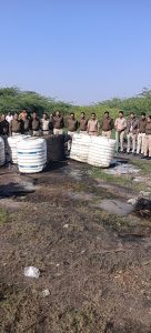 ग्वालियर कलेक्टर रुचिका चौहान* के आदेशानुसार ,सहायक आबकारी आयुक्त, जिला–ग्वालियर राकेश कुर्मी के मार्गदर्शन में अवैध मदिरा के विनिर्माण, विक्रय, संग्रह तथा परिवहन के विरुद्ध चलाये जा रहे विशेष अभियान के तहत मुखबिर से प्राप्त सुचना के आधार पर भीतरवार क्षेत्र एवं मोहना क्षेत्र में अवैध मदिरा की सूचना पर दुबहा दुबही कंजर डेरा, चमेली का चक, बंजारे का पुरा, वरसाना मोहल्ला मोहना में मय आबकारी बल के दबिश दी जहाँ भितरवार क्षेत्र में दुबहा दुबही कंजर डेरा, चमेली का चक, बंजारे का पुरा में मौके पर प्लास्टिक की टांकियों एवं जमीन पर बने गढ़ों में कुल 5500 kg गुड़ लहान बरामद हुआ मौके पर गुड़ लहान का सेम्पल लेकर शेष गुड़ लहान को फैलाकर नष्ट किया गया एवं मौके पर कीमती एक बड़ी लोहे भट्ठीया बरामद की गयी तथा मोहना में पुल पर रिंकी कंजर पति अरुण कंजर के अधिपत्य से 5 लीटर हाथ भट्टी बरामद की गयी |आरोपीगण के विरुद्ध मध्य प्रदेश आबकारी अधिनियम 1915 की धारा 34(1)(क )&34(1)(च )के तहत 6 प्रकरण पंजीबद्ध किये गए| नष्ट गुड़ लहान एवं लोहे की भट्ठीया का अनुमानित मूल्य लगभग 5,56,000 /रु है|